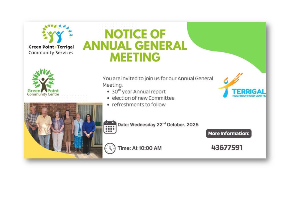 Reach out for support, inquiries, or bookings on 43677591 or email at booking@greenpointcommunitycentre.com.au