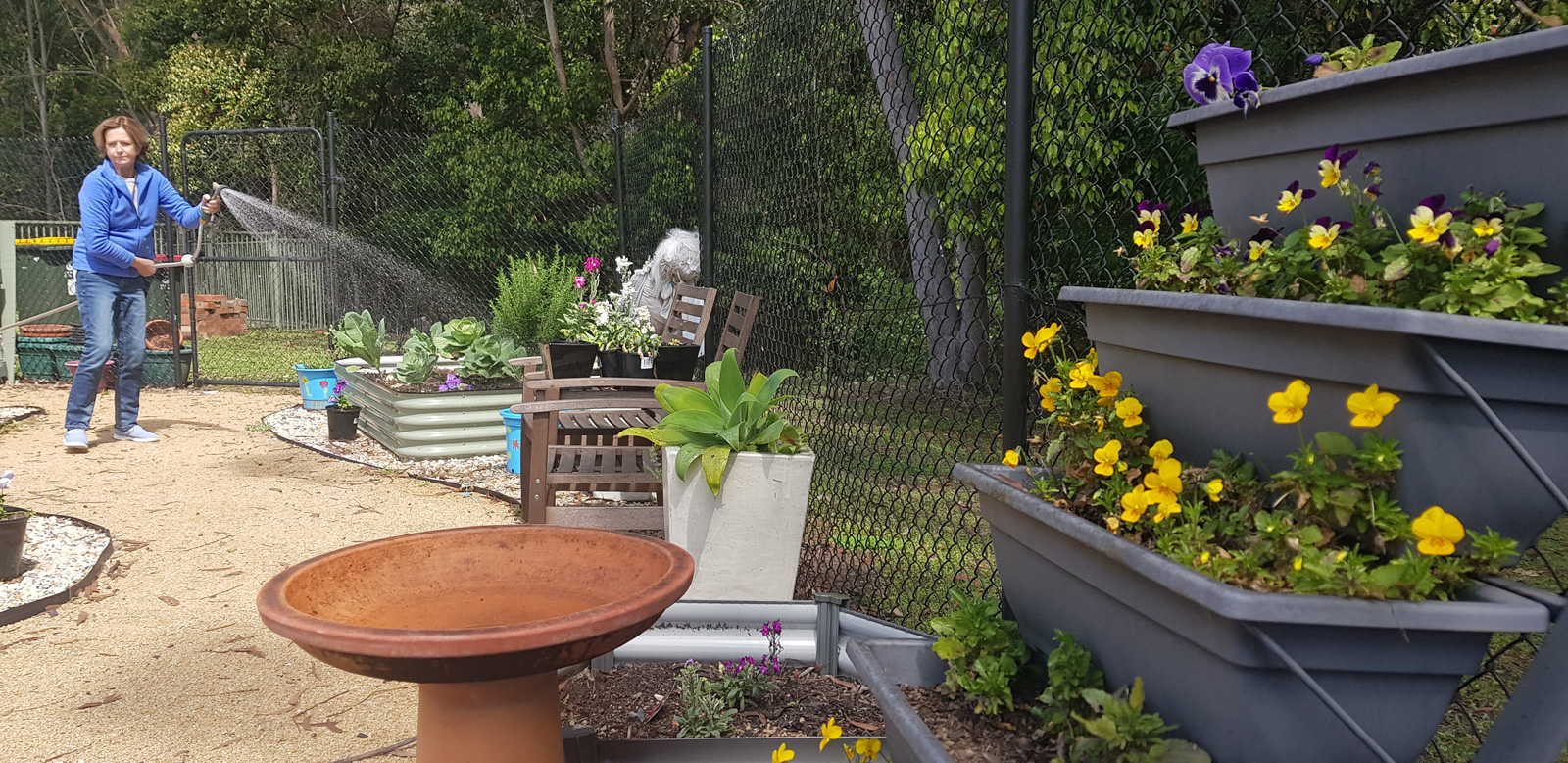 Our newest venture is the beautiful community patch made possible with funding from the Community Builder Partnership with NSW liberal government. It is a space where the community is invited to spend time watering, tending their own patch or simply enjoying the ambience, whilst listening to the beautiful bell birds in the bush nearby.
